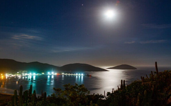 Arraial do Cabo à noite oferece um ambiente calmo e relaxante, ideal para quem prefere algo mais tranquilo.
