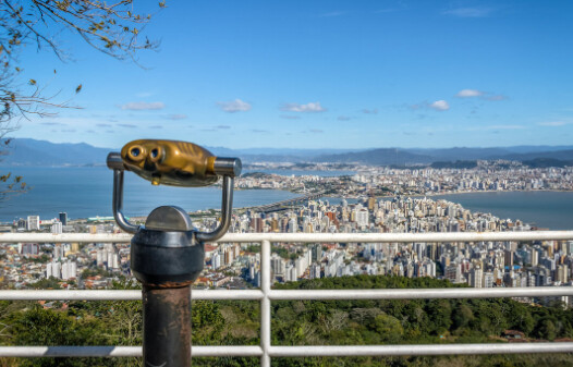 O mirante oferece uma vista incrível da cidade, das baías e da região continental, além de estar dentro do Parque Natural Municipal do Morro da Cruz, que conta com várias trilhas e estrutura para o lazer.