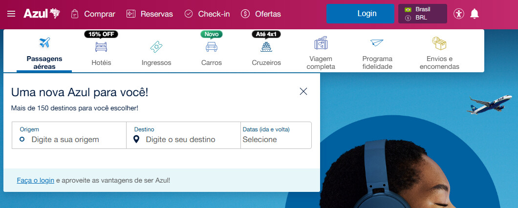 No final do mês, a Azul costuma soltar promoções de resgate (fica de olho no banner principal do site).