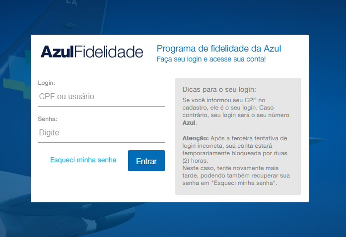 Entrei no site da Azul e fiz login na minha conta.