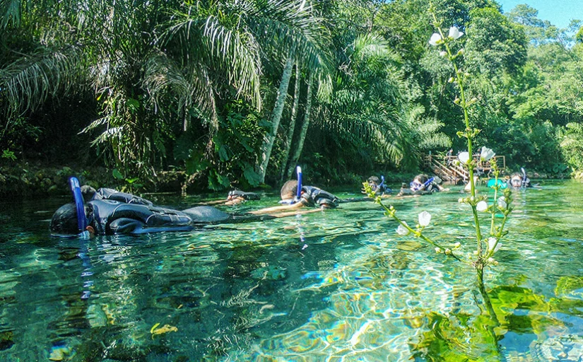 Durante a flutuação, os participantes utilizam máscara, snorkel e colete salva-vidas para deslizar pelas águas tranquilas dos rios. O objetivo é observar a incrível variedade de peixes, plantas e formações rochosas subaquáticas que compõem esse ecossistema exuberante.