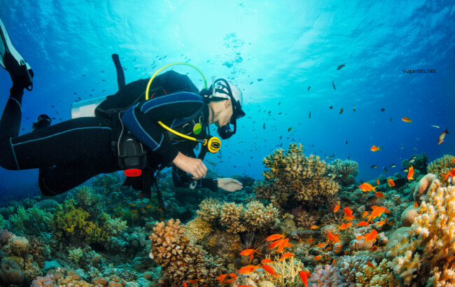 O mergulho pode ser realizado tanto dentro das piscinas naturais de Maragogi como na grande barreira de coral.