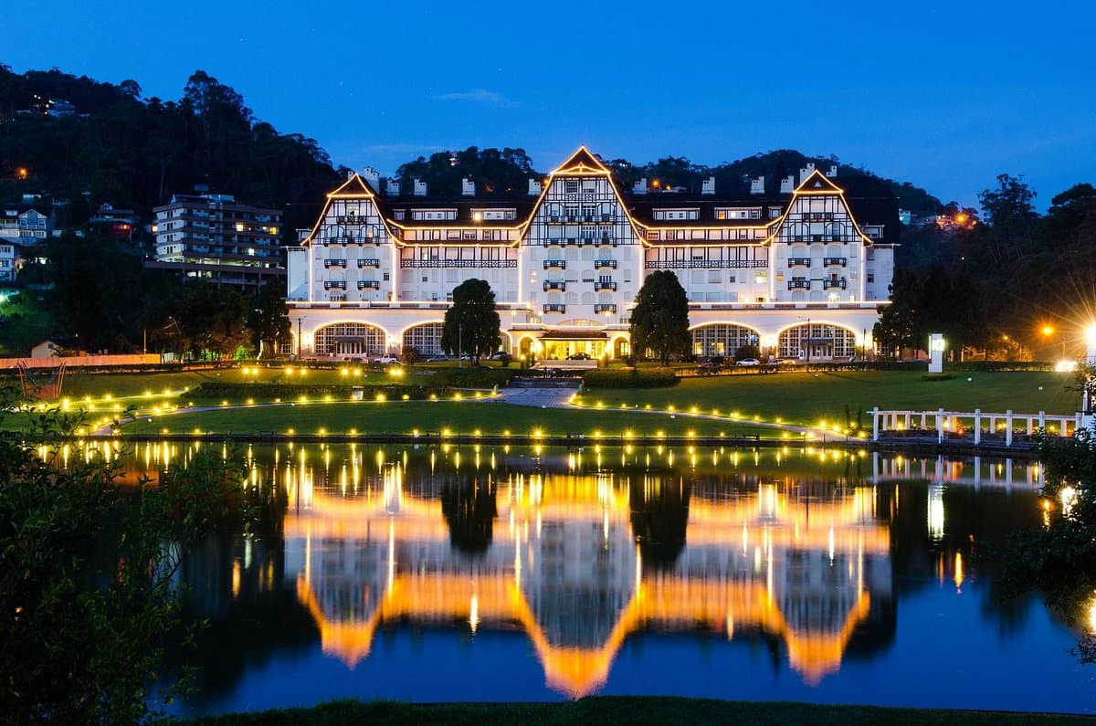 O Palácio Quitandinha nem sempre faz parte da programação principal, mas em vários anos ganha iluminação especial e atividades no entorno.