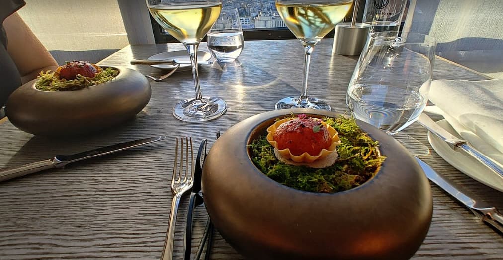 O ambiente é moderno, e o cardápio varia de acordo com a estação, sendo uma excelente opção de restaurante em Paris com vista para Torre Eiffel.