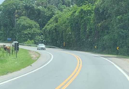 Mas não espere pista lisinha tem muito trecho esburacado, obras e quase nada de acostamento. Já a BR-101 tá melhor, mais movimentada e com estrutura.