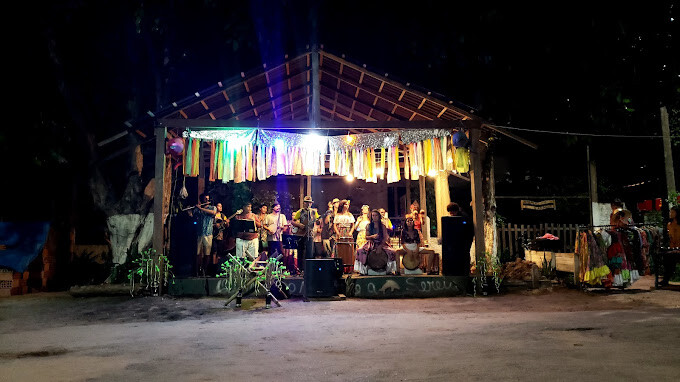 Amiga, recomendo demais o Espaço Alter do Chão. É um lugar tradicional em Alter do Chão, onde você pode dançar carimbó e curtir apresentações ao vivo de música paraense. A energia do lugar é simplesmente incrível, vale muito a pena. O espaço funciona como bar, restaurante e até balada em alguns momentos. O ambiente é super agradável, e as festas são animadas, alternativas e culturais. A comida é boa, mas demora bastante – esperamos cerca de 2 horas pelo prato.