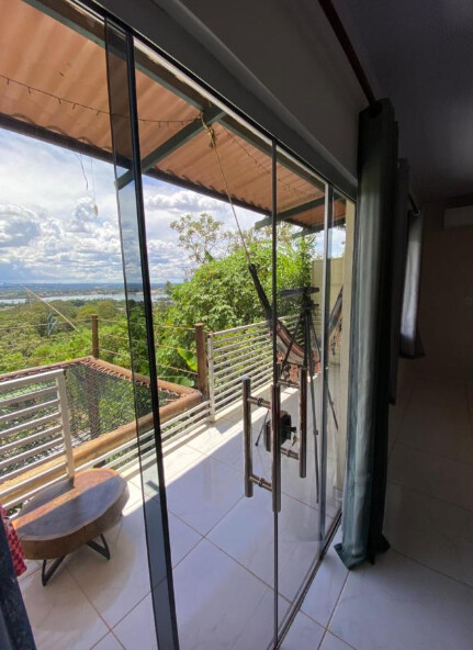 Ele oferece uma piscina privada e um jardim lindo, além de ser super bem localizado. A casa é bem equipada e tem uma atmosfera romântica e acolhedora, ideal para casais. A diária é a partir de R$688 e a experiência é única.