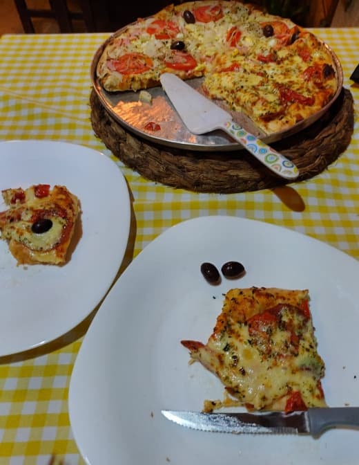 O ambiente é descontraído e o atendimento foi bom, o preço é bem justo, e a pizza vale muito a pena. Se você estiver em Trindade e quiser uma boa pizza, esse é o lugar.