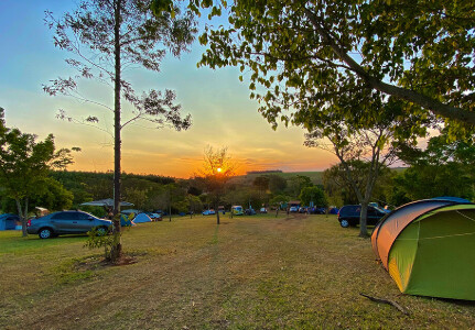 Esse camping tem estrutura rural, contato com animais e trilhas leves. A cidade oferece esportes de aventura, mas também tem opções tranquilas, como passeios de barco no Rio do Peixe. O valor médio da diária é R$ 334.