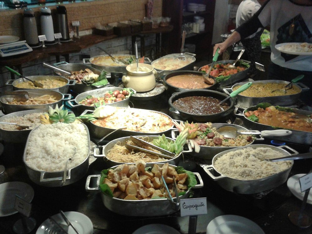 O restaurante oferece duas opções: self-service a R$ 105 o quilo ou buffet livre por R$ 65. O buffet é bem variado e inclui até uma mesa especial de doces. Para quem opta pelo self-service, o café está incluso.
