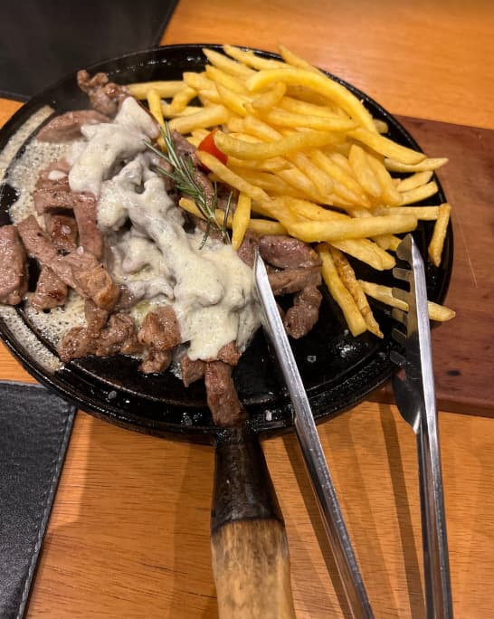 Pedimos o bife de chouriço e uma seleção de acompanhamentos, tudo no ponto certo. A carta de chouriço os vinhos também são excelentes. Apesar do preço ser um pouco elevado, vale cada centavo pela experiência.