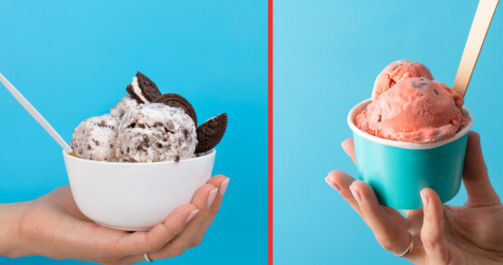 Já o sorvete tradicional costuma ser mais aerado e consistente, graças à quantidade de ar introduzida no preparo e ao congelamento mais intenso.