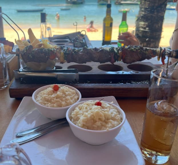 Fui durante o almoço e pedi um risoto de frutos do mar que estava incrível. A brisa do mar, o som das ondas e o ambiente deixaram uma experiência ainda mais especial. Para quem procura um restaurante em Búzios que combine comida boa com um visual paradisíaco, esse é um dos melhores.