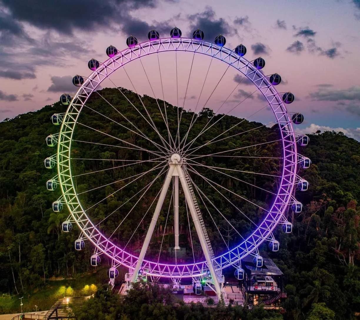 Também me encantei com a roda gigante de BC, a Big Wheel. Localizada no extremo da Barra Norte de Balneário Camboriú, essa atração impressiona com seus 82 metros de altura, oferecendo aos visitantes uma vista panorâmica da orla, da mata atlântica e dos imponentes arranha-céus que caracterizam a cidade.