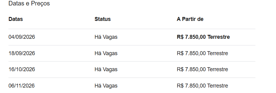 Pelas agências, os pacotes econômicos custam em média R$ 5.980 (somente terrestre), e os completos podem chegar a R$ 7.350, já incluindo hospedagem, alimentação, guias, transporte local, acampamento e seguro nacional.