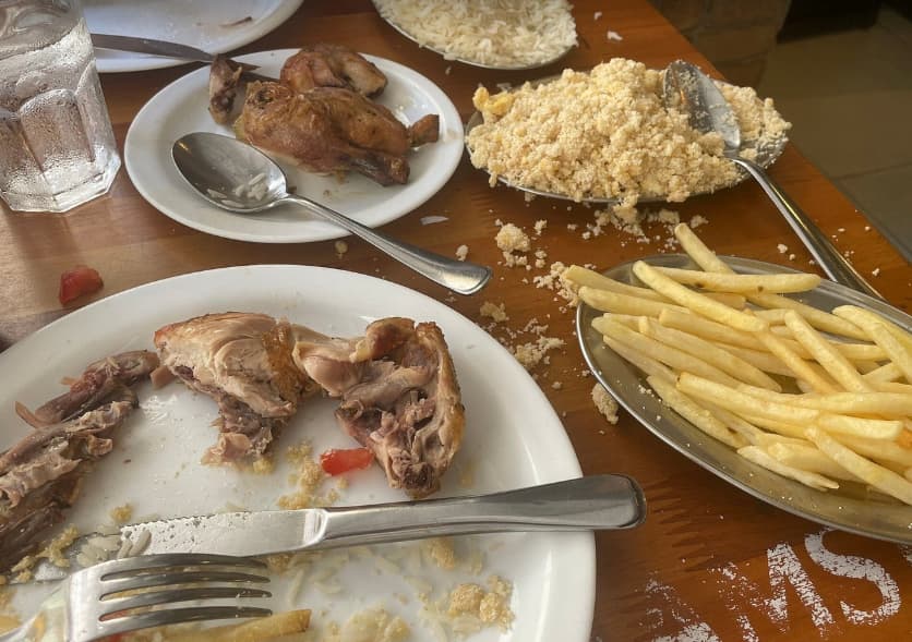 Já em um restaurante em Copacabana como o Galeto & Cia, o custo foi bem menor, cerca de R$ 70 por pessoa. Dá para ter momentos incríveis mesmo gastando menos.